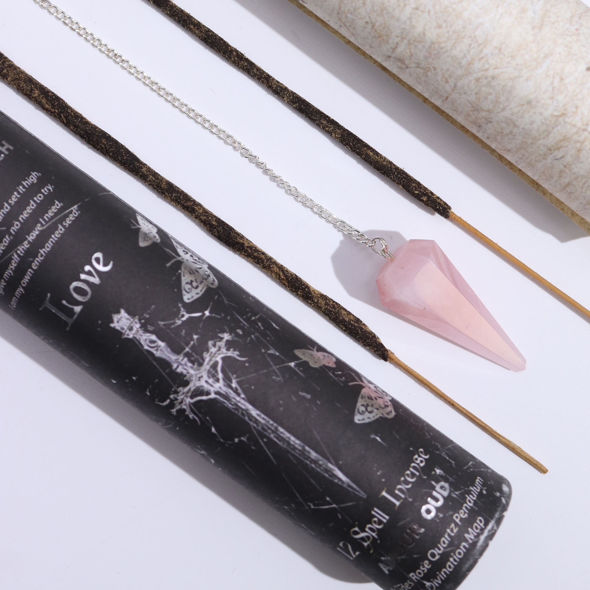 Das Liebe Zauber Räucherstäbchen ist eine warme und einladende Wahl für Einzelhändler, die ein zugängliches Produkt mit emotionaler Ausstrahlung anbieten möchten. Jedes Röhrchen enthält etwa zwölf Räucherstäbchen, ein Rose Quartz-Pendel und eine Wahrsagekarte, alles präsentiert in hochwertiger Verpackung, die bereits beim Aufnehmen einen besonderen Eindruck vermittelt. Rose Quartz wird weithin als Edelstein betrachtet, der mit Mitgefühl, Offenheit und sanfter emotionaler Balance in Verbindung steht und sich somit leicht für Kunden eignet, die nach einem sinnvollen Geschenk rund um Zuneigung, Verbindung oder Selbstfürsorge suchen. Die sanfte, romantische Identität dieses Dufts passt gut in jedes Geschäft, das Kristallgeschenke, spirituelle Artikel oder Lifestyle-Kollektionen mit persönlicher Note anbietet. Das vertikale Design und die detaillierte Gestaltung sorgen dafür, dass es auffällt, ohne viel Platz einzunehmen – ideal für Boutiquen, Online-Shops und Einzelhandelsflächen in kleinem Format.
