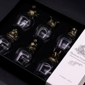 Jedes Set mit zwölf oder sechs Gläsern wird in einer hochwertigen schwarzen Geschenkbox geliefert – perfekt zum Ausstellen oder Verschenken. Diese Gläser sind in den Größen 25 ml, 50 ml und 100 ml erhältlich. Sie sind ausschließlich für kalte Getränke geeignet und sollten am besten von Hand gespült werden, um ihre Details und ihren Glanz zu erhalten.