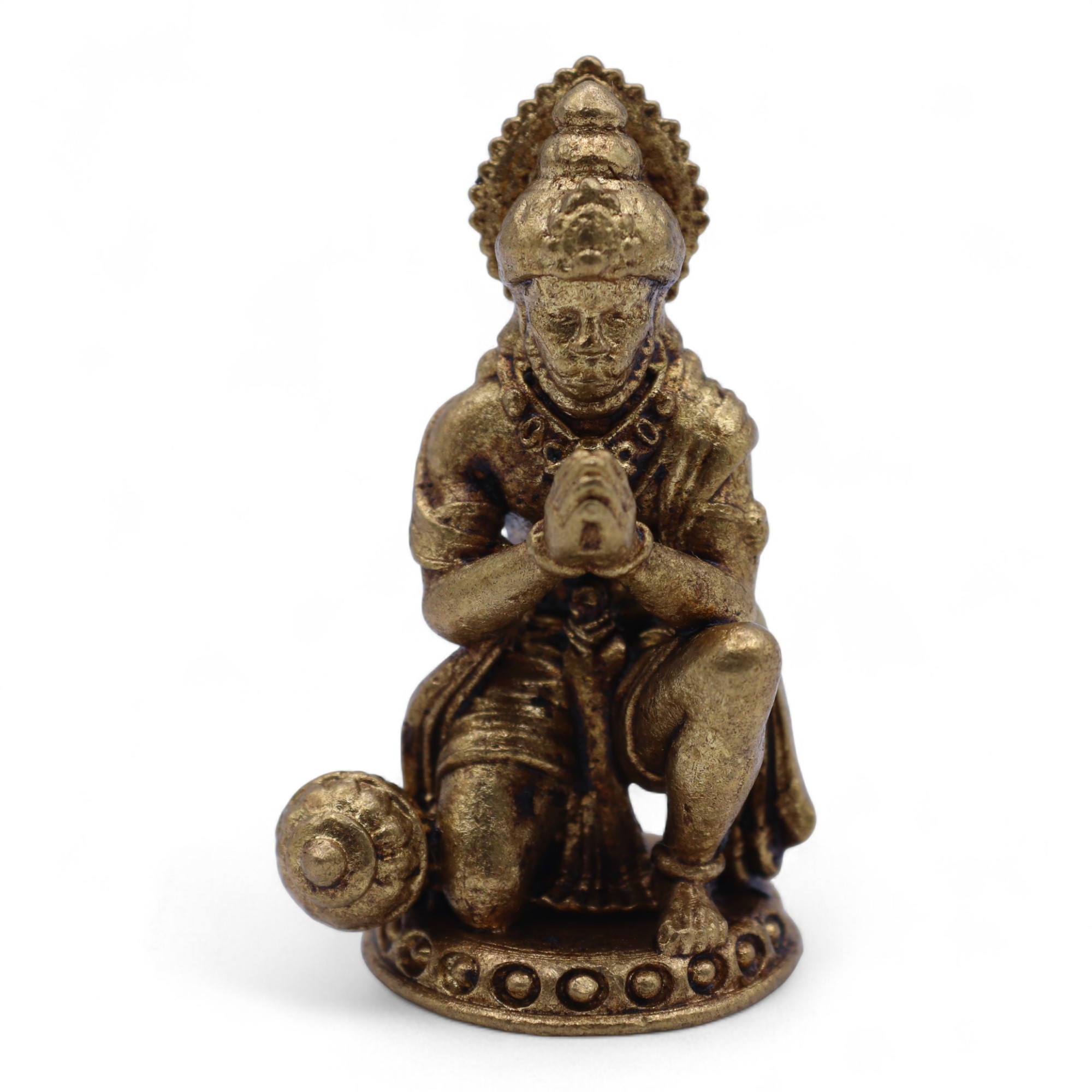 Die Miniaturgötter aus Messing – Hanuman (30 g, 36 mm) zeigt eine fein detaillierte Darstellung einer der beliebtesten und kraftvollsten Gottheiten des Hinduismus. Hanuman wird für seine enorme Stärke, Loyalität und Hingabe verehrt und symbolisiert Schutz, Mut und die Fähigkeit, Hindernisse zu überwinden – Eigenschaften, die bei vielen Kunden großen Anklang finden.