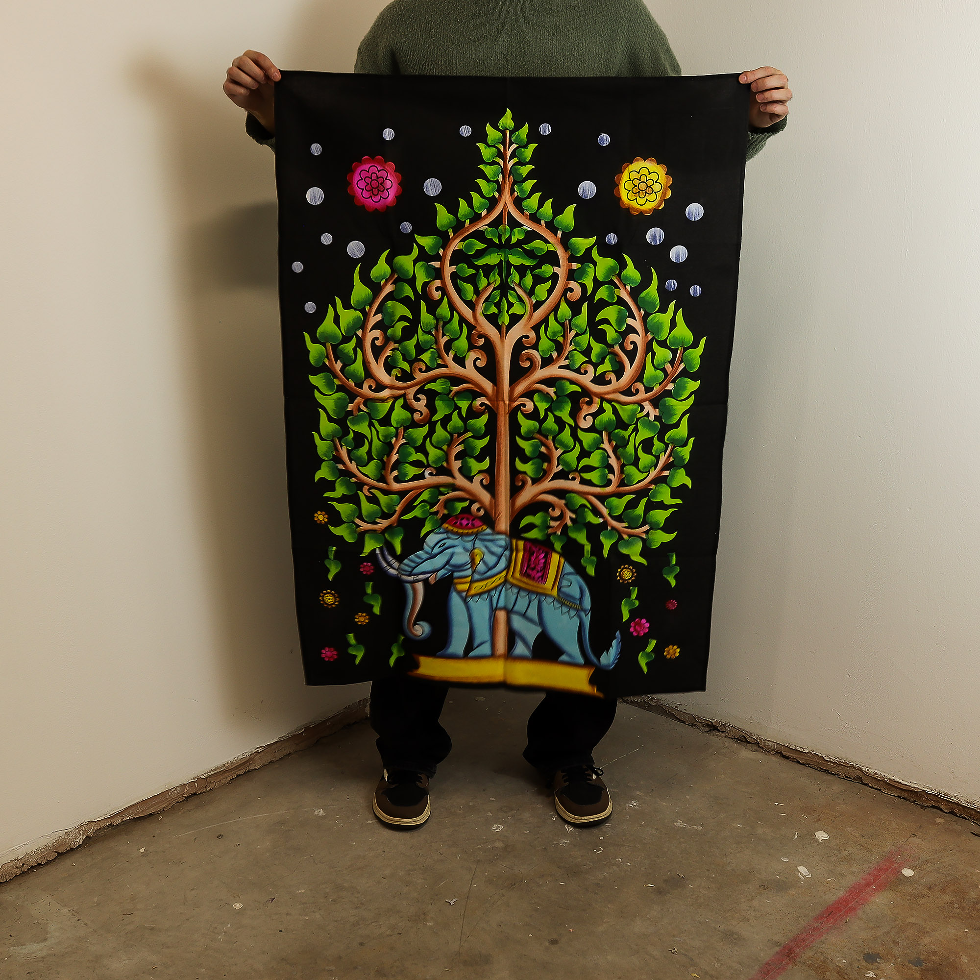 Dieses wunderschöne Design vereint zwei kraftvolle indische Symbole: den Elefanten, der Weisheit, Stärke und Glück verkörpert, und den Lebensbaum, der Wachstum, Harmonie und Verbundenheit symbolisiert. Gemeinsam bilden sie ein bedeutungsvolles Kunstwerk, das Kulturen und Generationen gleichermaßen anspricht.
