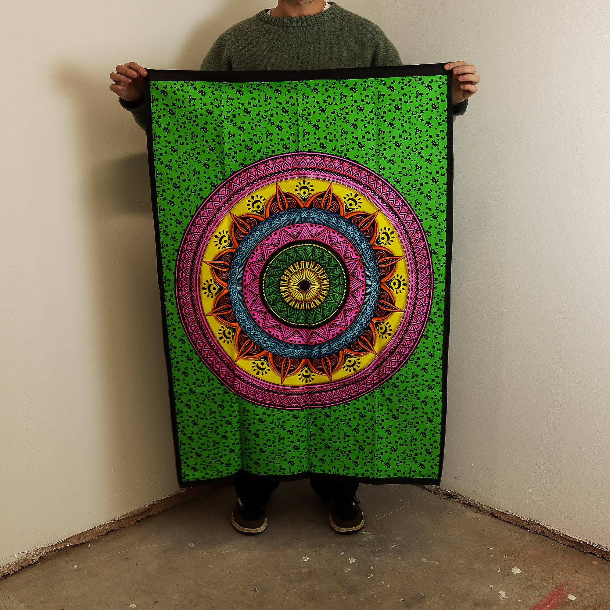 Mit seinem ausdrucksstarken und detailreichen Design verleiht dieses Stück Wänden, Betten oder Meditationsräumen Leben und eignet sich sogar als Strandtuch. Jeder Wandbehang ist einzeln in einem Polybeutel mit Aufhängeetikett verpackt und somit sofort verkaufsfertig. Dank seiner kompakten Größe von 70 x 110 cm lässt er sich leicht präsentieren und versenden, während seine leuchtenden Farben in jeder Auslage ein Blickfang sind.