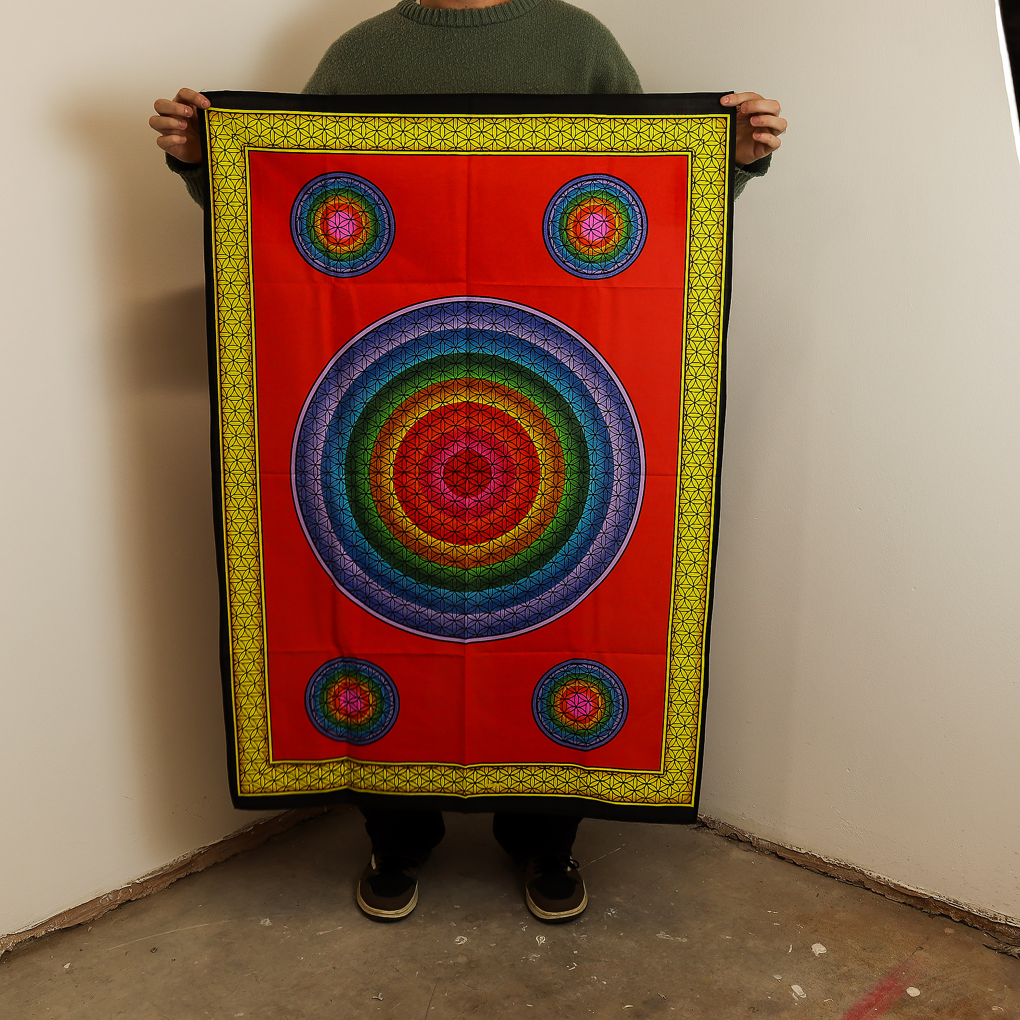 Die leuchtenden Farben und das symmetrische Muster sprechen alle an, die sich Harmonie oder Energie in ihren Räumen wünschen. Der Behang lässt sich leicht falten, lagern und präsentieren und ist ein erschwingliches Produkt mit hervorragender visueller Wirkung – ideal für Geschäfte, die sich auf Wohnaccessoires, Geschenke für Achtsamkeit oder Festtagsartikel spezialisiert haben.