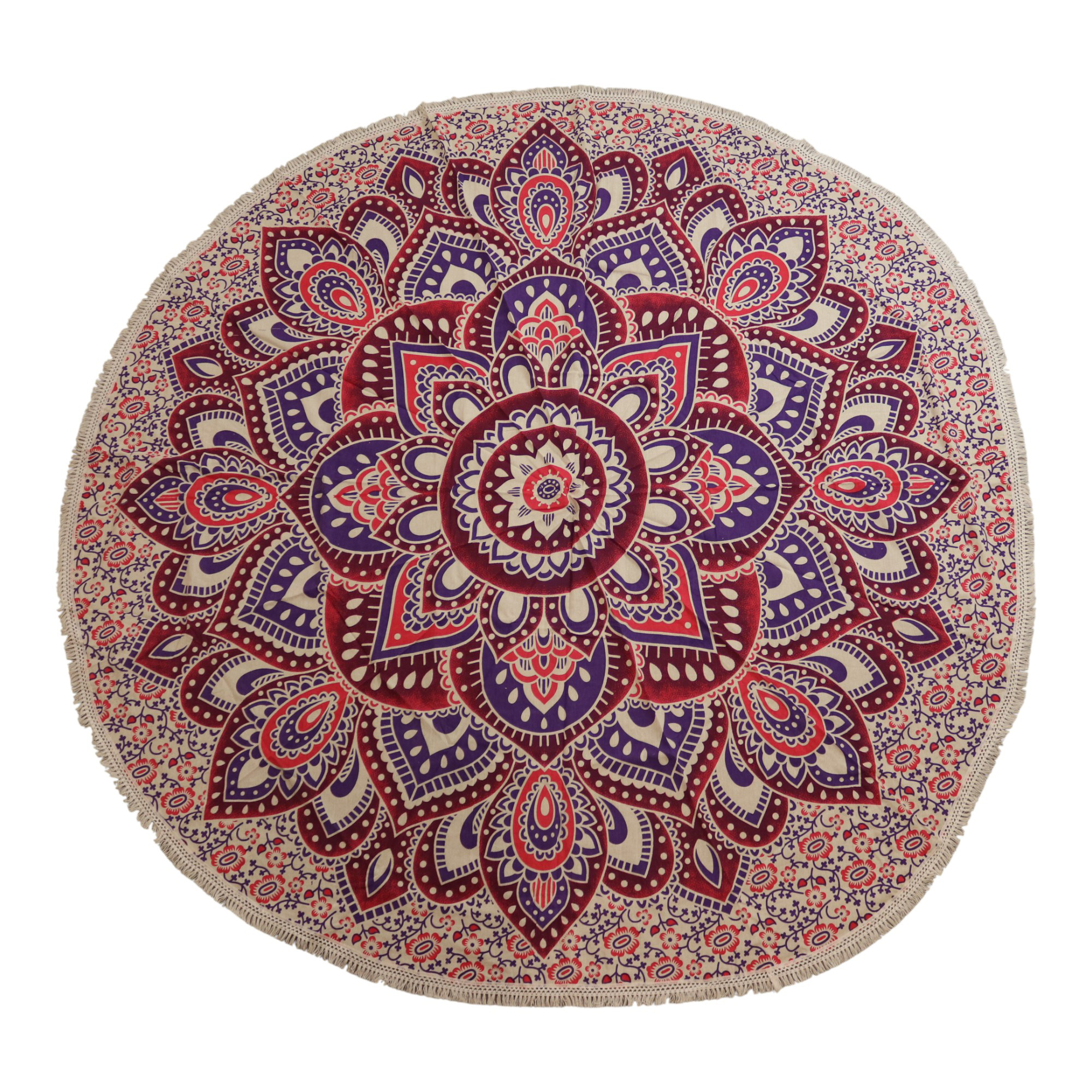Angesichts der anhaltenden Beliebtheit von Mandala-Kunst in den Bereichen Wohndekoration, Wellness und Lifestyle bietet dieses Rundkissen ein hervorragendes Preis-Leistungs-Verhältnis und zeitlosen Charme. Ein leicht zu lagerndes Stück, das das ganze Jahr über das Sortiment von Geschäften mit Boho- und spirituellem Flair bereichert.