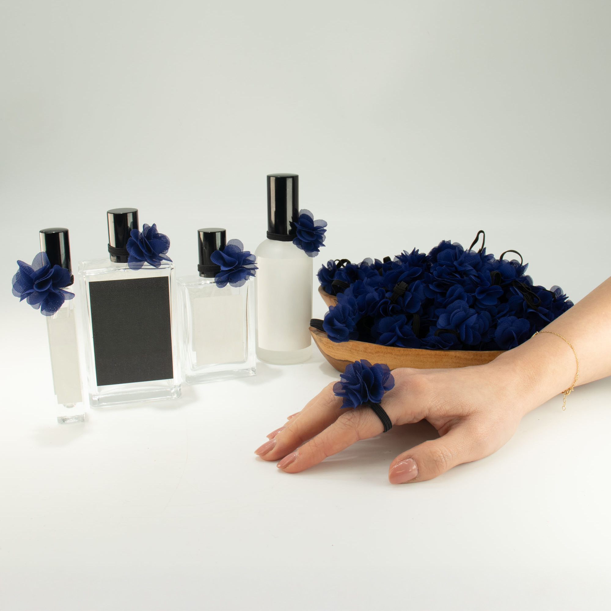 Diese marineblauen Chiffon-Duftringe werden im 100er-Pack geliefert und sind so konzipiert, dass Dufttests im Einzelhandel interaktiver und ansprechender gestaltet werden können. Jeder Ring verfügt über eine filigrane Chiffon-Blume auf einem flexiblen Gummiband, sodass Kunden den Duft beim Ausprobieren von Parfüms oder Duftölen tragen können.