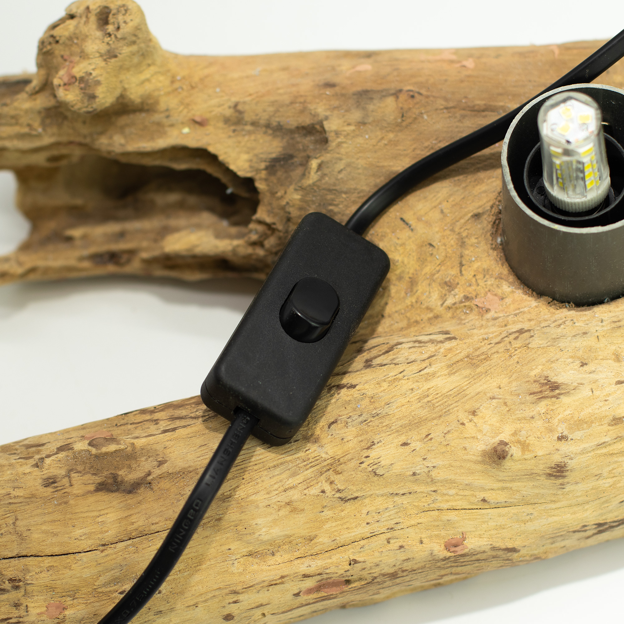Auf einem natürlichen Treibholz-Fuß aus Indonesien stehend, hat jede Lampe ihre eigene organische Form und Textur. Kein Fuß gleicht dem anderen, was jedem Stück einen charakteristischen, handgefertigten Charakter verleiht. Die LED-Fassung ist sauber im Fuß untergebracht, sodass das Gesamtbild schlicht bleibt und die Lampe leicht zu pflegen ist.