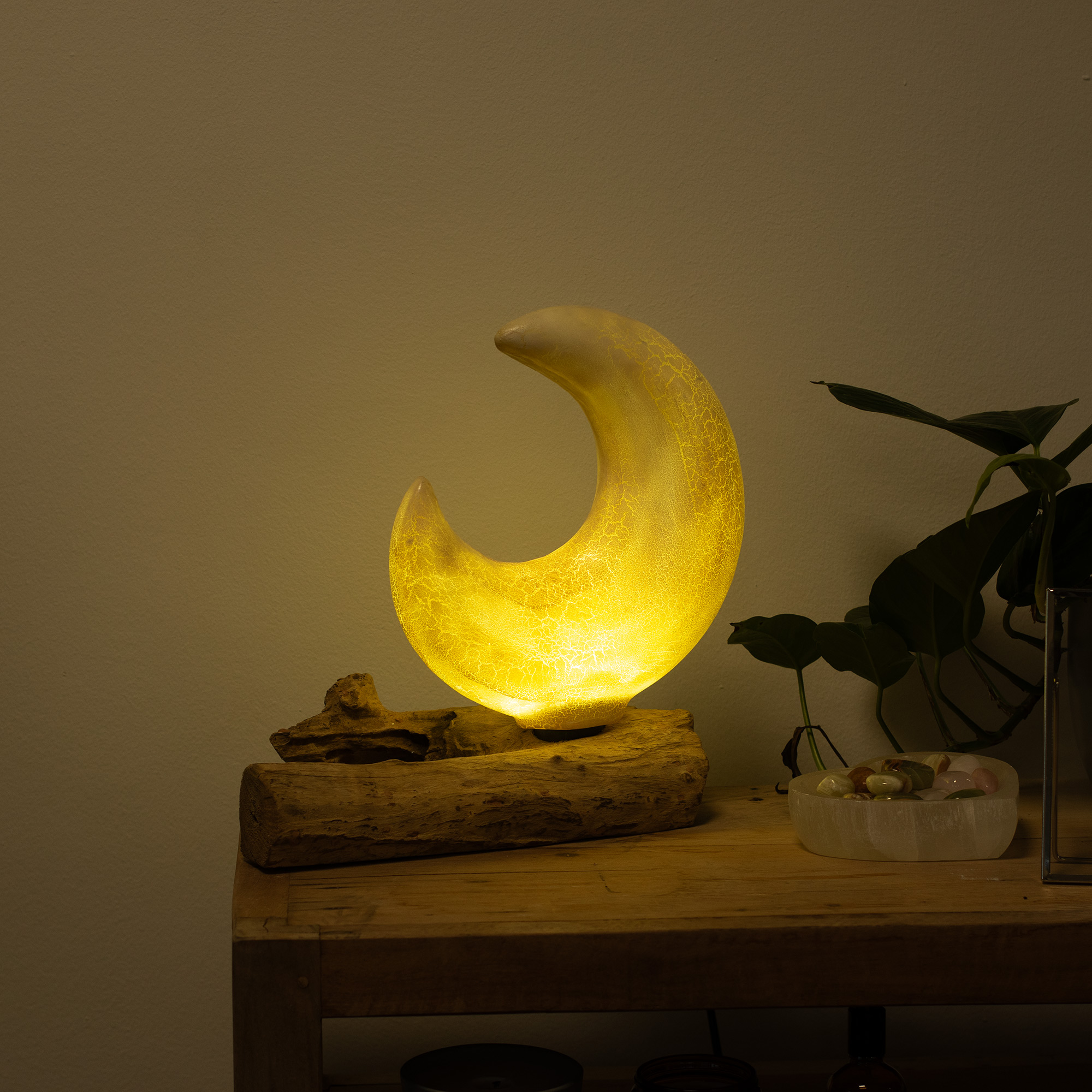 Ergänzen Sie Ihr Sortiment mit diesem Half Moon-Design für eine atmosphärische Lampe, die sowohl im eingeschalteten Zustand als auch unbeleuchtet einen starken Blickfang bietet.