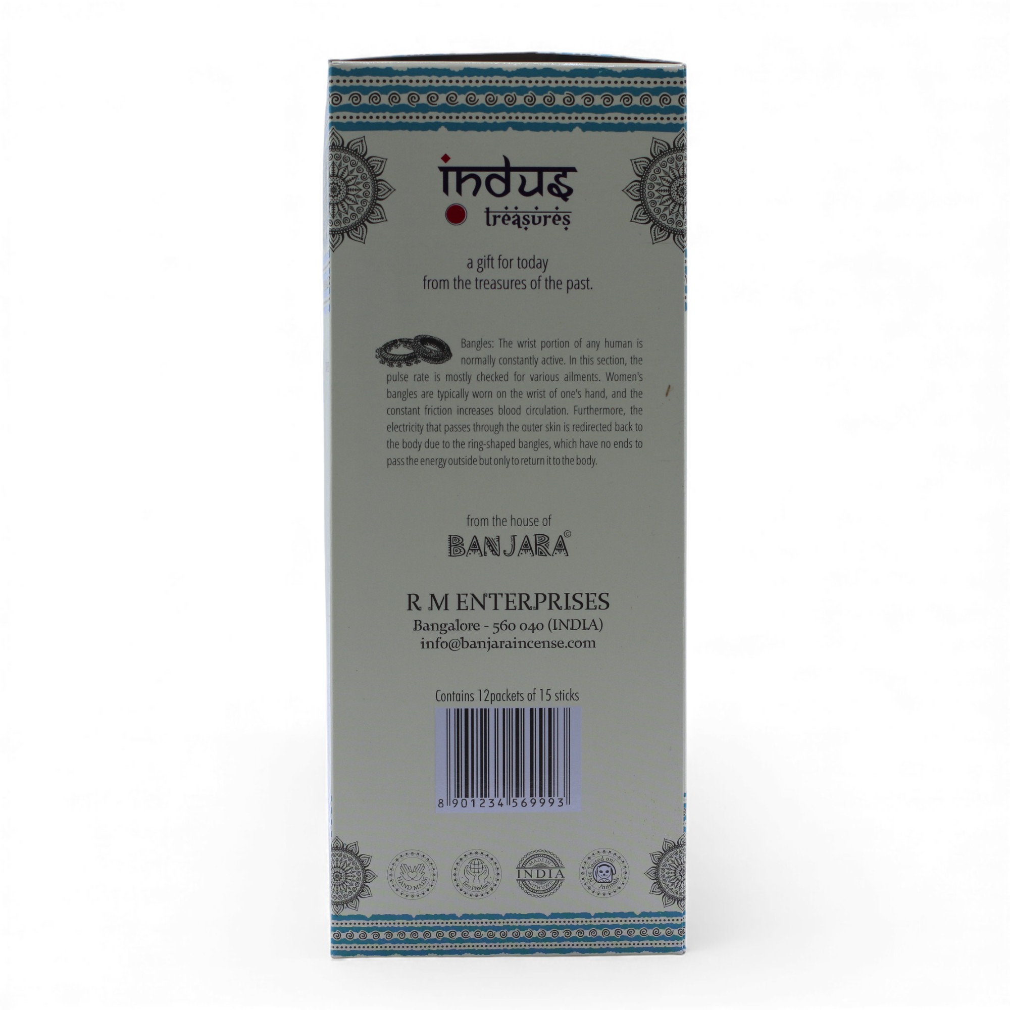 Ergänzen Sie noch heute Ihr Sortiment mit Indus Treasures Weißer-Moschus-Räucherstäbchen – 15 g und bieten Sie Ihren Kunden einen dezent-eleganten Duft, der mühelos beruhigend wirkt.