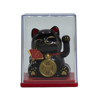Die Mini Solar-Glückskatze in Box – Schwarz ist eine starke visuelle Option für Händler, die eine kräftigere, hochwertiger wirkende Farbvariante innerhalb ihres Glückskatzen-Sortiments anbieten möchten.