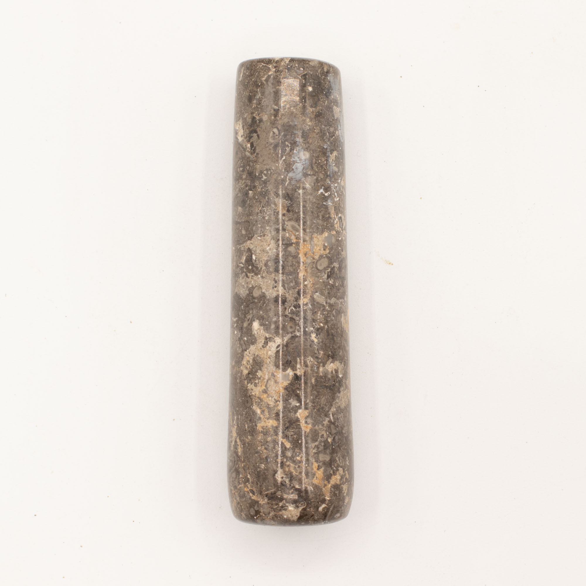 Aus massivem, natürlichem Flussstein gefertigt, ist dieser große Pistill und Mörser das gewichtigste Stück der Serie und bietet maximale Kapazität sowie starke visuelle Präsenz. Jedes Exemplar zeigt natürliche Variationen in Farbe, Maserung und Oberflächenstruktur, die den Charakter des Steins widerspiegeln.