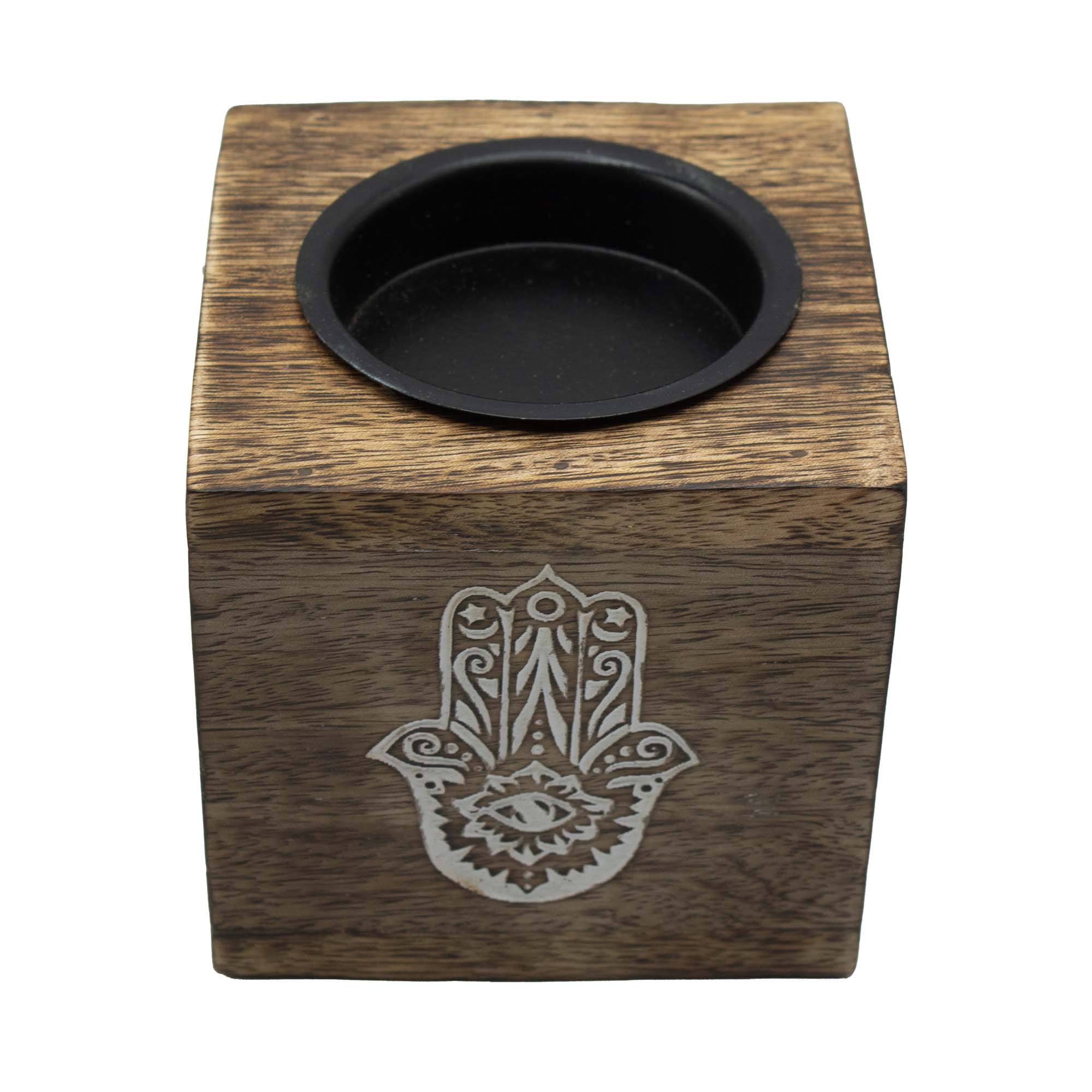 Dieser quadratische Duftbrenner ist mit dem Hamsa-Symbol verziert, das traditionell mit Schutz und positiver Energie verbunden ist. Gefertigt aus Mangoholz, verbindet er eine warme, natürliche Oberfläche mit einem klar ausgearbeiteten, gravierten Motiv.
