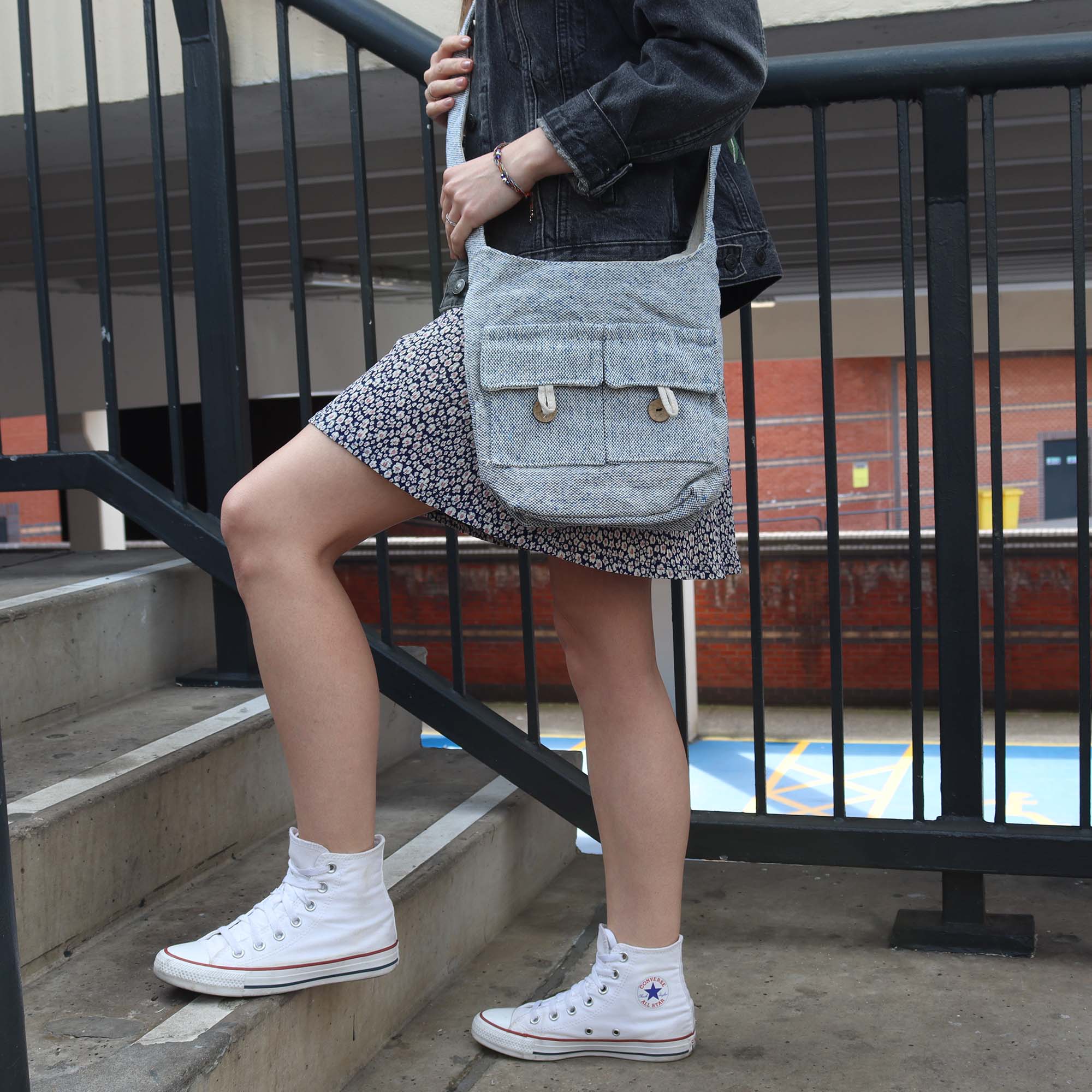 Tauchen Sie ein in die bezaubernde Welt des Öko-Chic mit unseren Großhandel Taschen mit zwei Taschen in natürlichen Farbtönen – Comp Denim – Medium.