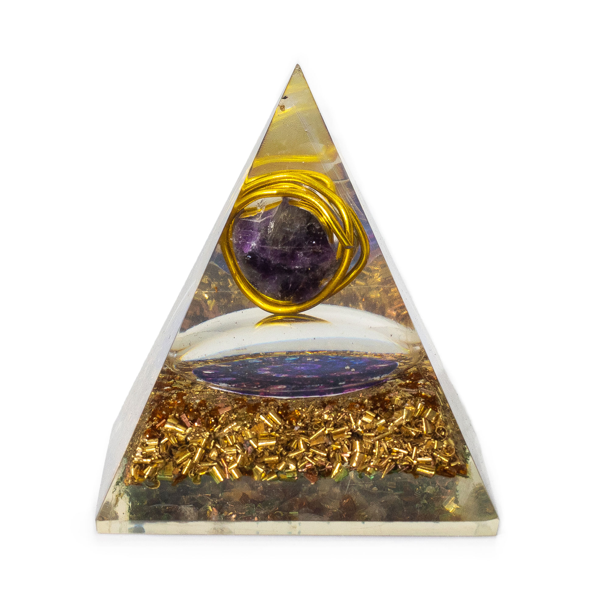 Verleihen Sie Ihrem Sortiment spirituelle Balance und natürliche Eleganz mit der mittelgroßen Orgonit-Pyramide – umwickelter Amethyst mit Kupferchips. Jede Pyramide wird in Handarbeit aus Harz, Kupfer und natürlichen Edelsteinen gefertigt. Ein mit Draht umwickelter Amethystkristall, umgeben von Kupferchips, verstärkt den Energiefluss und die positiven Schwingungen.