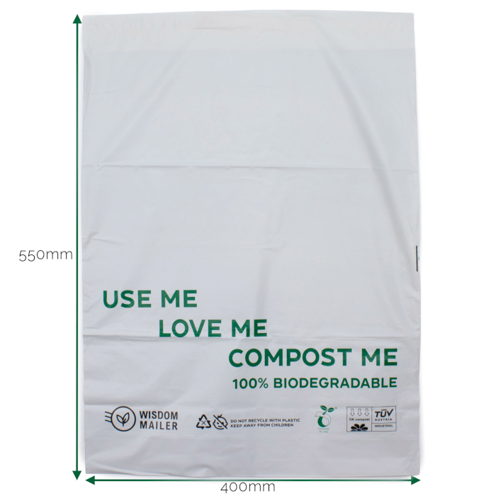 Diese biologisch abbaubaren Versandtaschen im Format 400 × 550 mm werden in Packungen zu 100 Stück geliefert und sind für den Versand mit hohem Volumen und ökologischem Fokus konzipiert. Dank ihres großzügigen Formats eignen sie sich ideal für Bekleidungsbestellungen, Sammelsendungen und Mehrartikel-Sendungen, bei denen Platz und Flexibilität entscheidend sind.