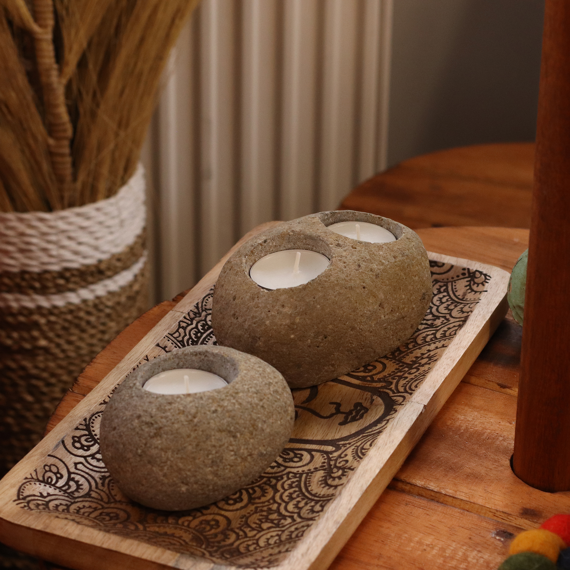 Jeder einzelne Nachtlichthalter wird aus echten Flusssteinen in Indonesien gefertigt und zelebriert die Schönheit der Natur in ihrer reinsten Form.