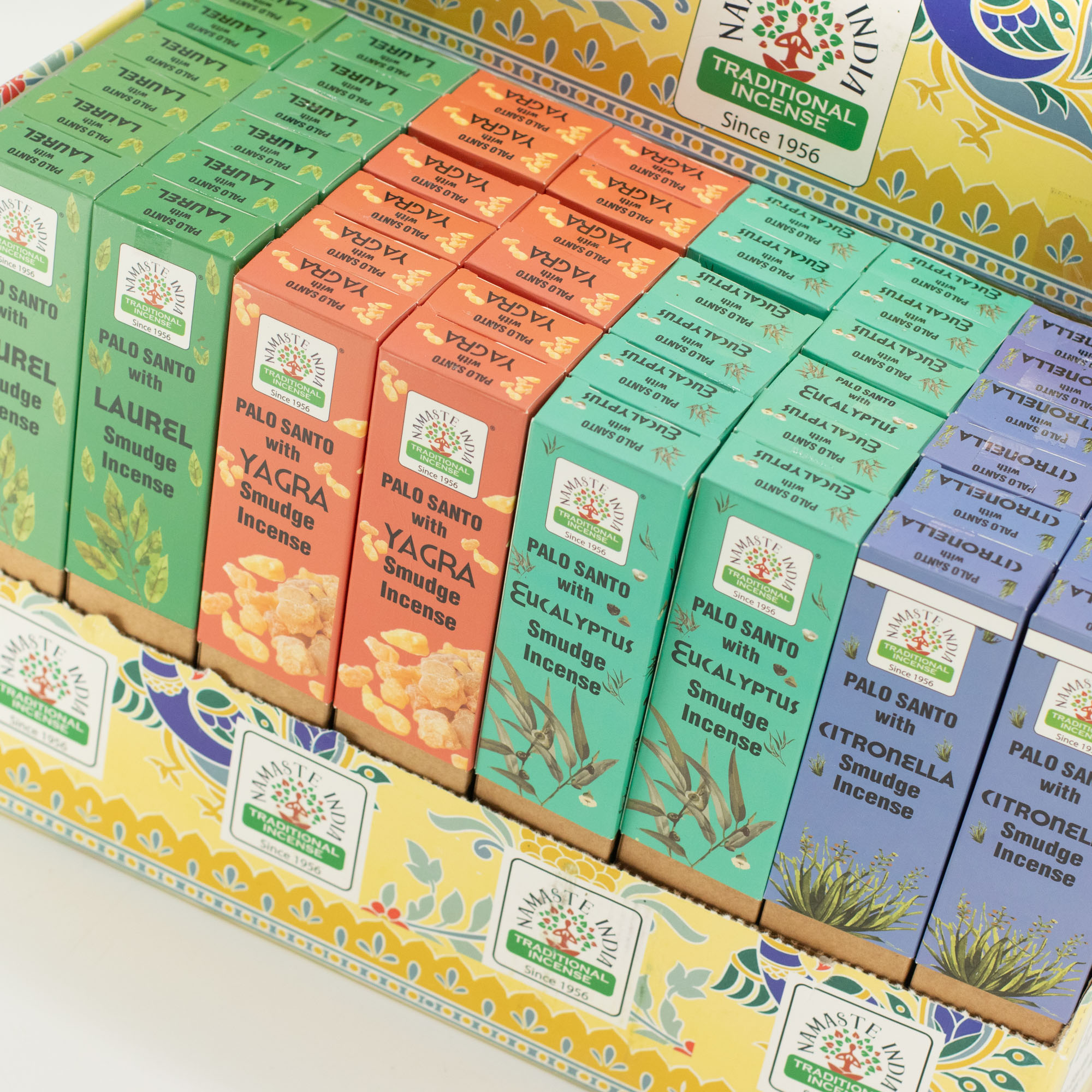Stärken Sie Ihr Einzelhandelsangebot mit dem 48x Von der Erde inspirierte Räucherstäbchen Display-Pack, einer umfassenden Lösung für Geschäfte, die eine vielfältige, hochwertige Auswahl traditioneller Düfte anbieten möchten. Diese Master-Display-Einheit enthält eine sorgfältig kuratierte Zusammenstellung von vier unterschiedlichen Duftvarianten – Lorbeer, Yagra, Eukalyptus und Citronella – jeweils kombiniert mit der erdenden Essenz von Palo Santo, um ein intensives sensorisches Erlebnis zu schaffen.