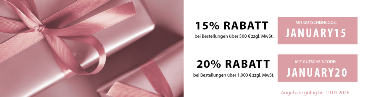 15 % RABATT auf Bestellungen über 500 € zzgl. MwSt. mit Gutscheincode: