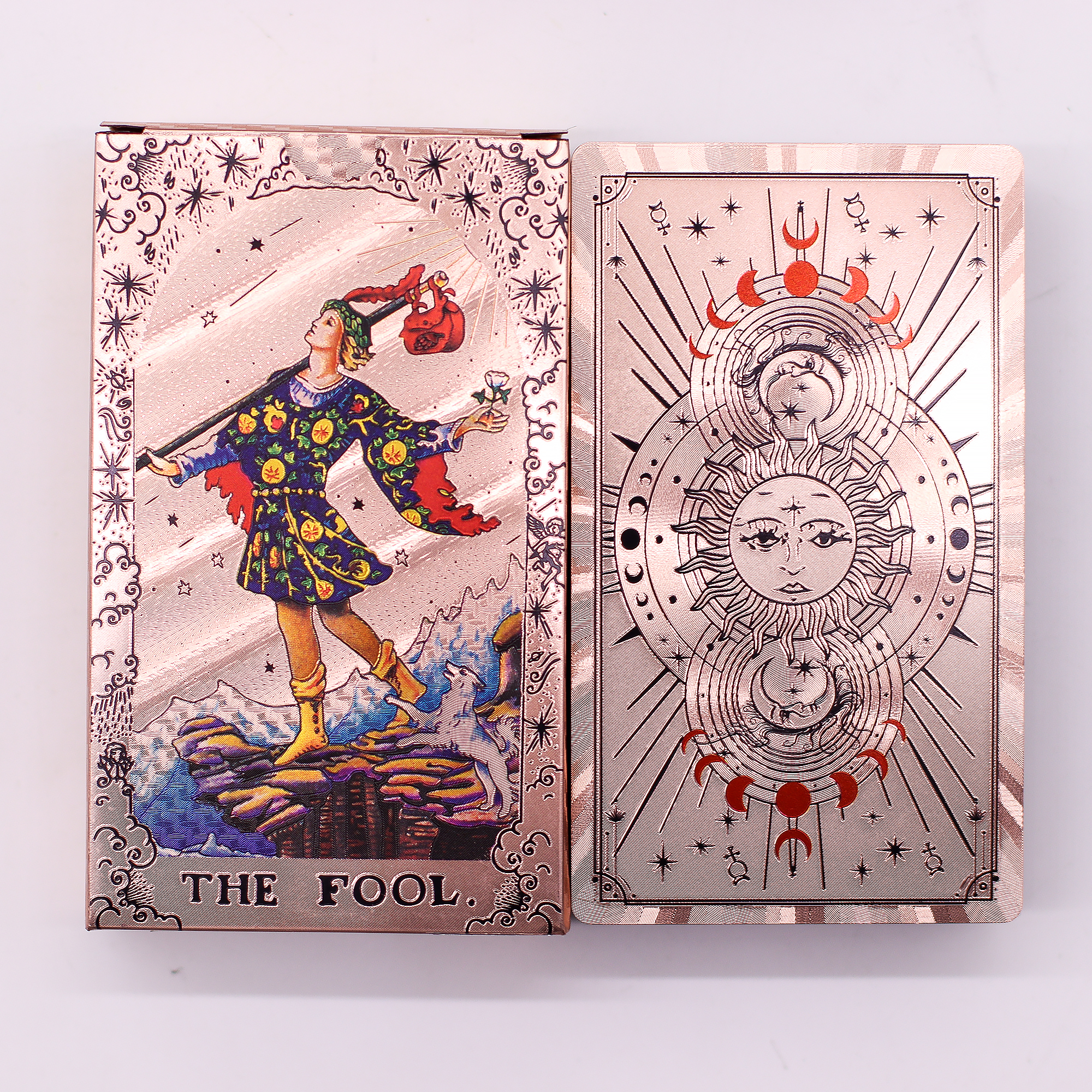 Das Tarotkartenset „Mondphase“ mit Roségoldfolie verleiht Ihren Lesungen durch sein strahlendes Foliendesign schimmernde Tiefe. Jede Karte reflektiert mondhelle Töne, die der zeitlosen Kunst des Tarots eine himmlische Note verleihen. Dieses 78-Karten-Deck zeigt klassische Tarot-Motive, die durch Roségoldfolie auf glattem, strapazierfähigem Karton für häufigen Gebrauch hervorgehoben werden. Das elegante Mondphasen-Thema verbindet symbolische Bedeutung mit himmlischer Schönheit. Das Ganze wird in einer stilvollen Verpackung mit Anleitung und einer wunderschön gestalteten Box geliefert.