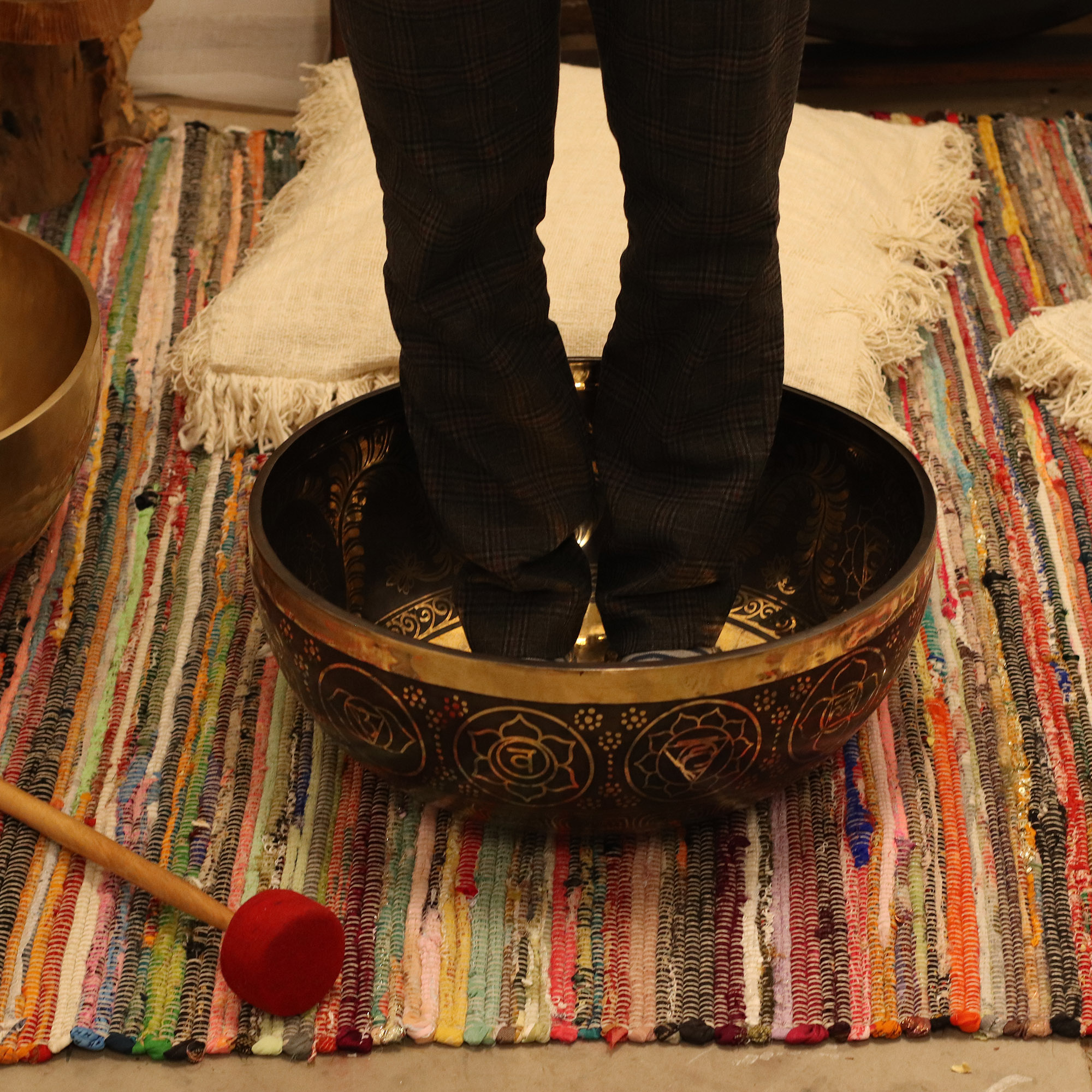 Jede Schale wird mit einem roten Holz-Gongschlägel geliefert, mit dem Ihre Kunden die reichen, erdenden Töne aktivieren können. Beim Spielen oder Anschlagen erzeugt sie lange, resonante Schwingungen, die den Raum erfüllen – ideal für Meditationsräume, Klangtherapiesitzungen, ganzheitliche Praktiken oder achtsame Raumgestaltung.