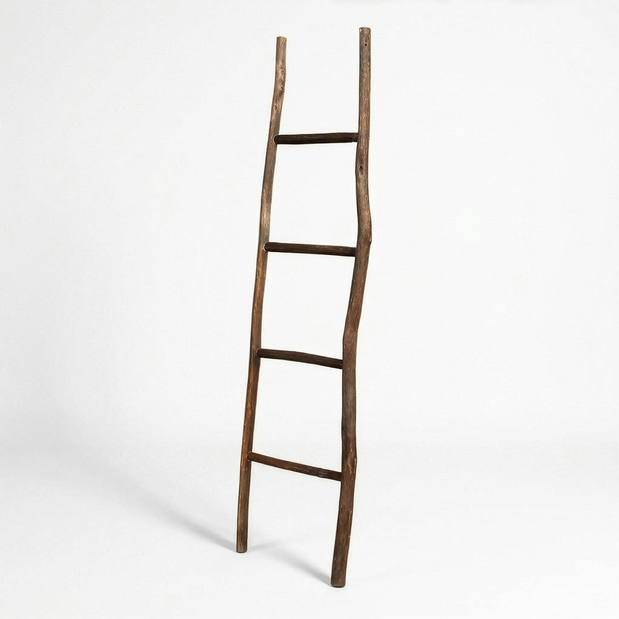 Hergestellt aus hochwertigem Kemu-Holz, besticht die Leiter durch ein natürliches Finish, das die charakteristische Maserung und die natürlichen Aststellen des Holzes hervorhebt.