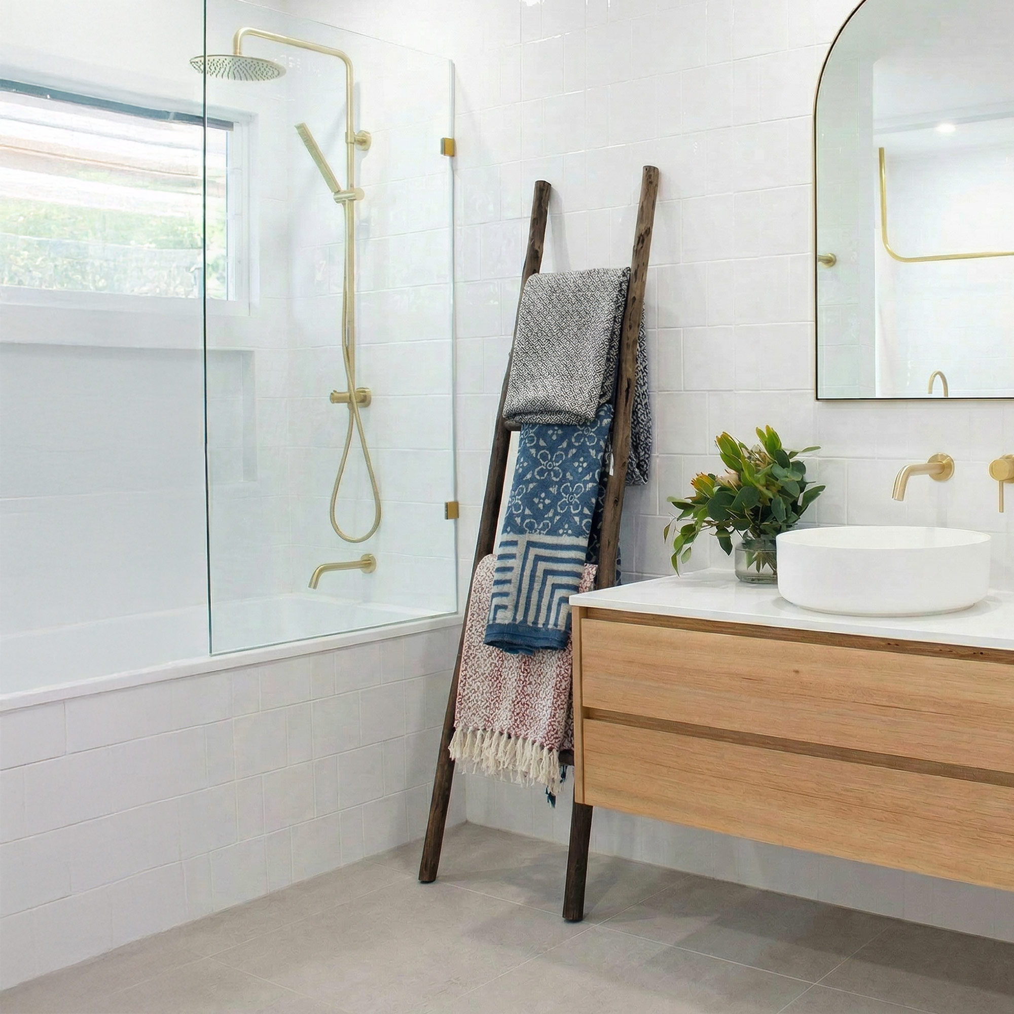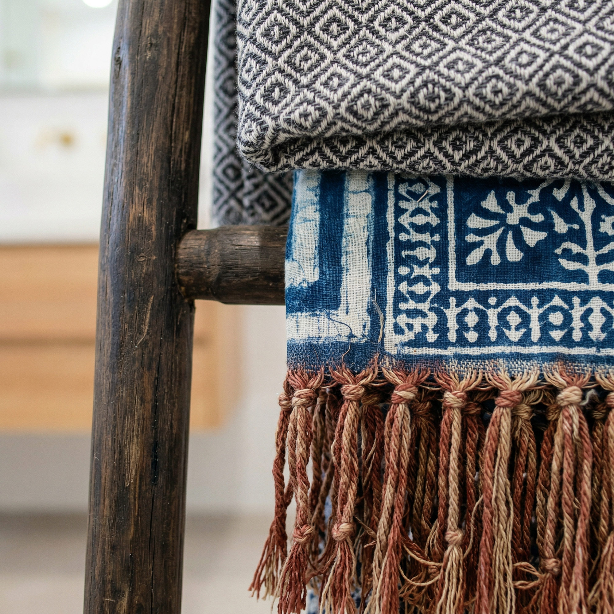 Sie sind perfekt, um Ihrem Zuhause einen Hauch rustikaler Eleganz zu verleihen. Verwenden Sie sie, um Decken, Handtücher zu präsentieren oder lehnen Sie sie einfach an eine Wand als auffälliges Dekorstück.