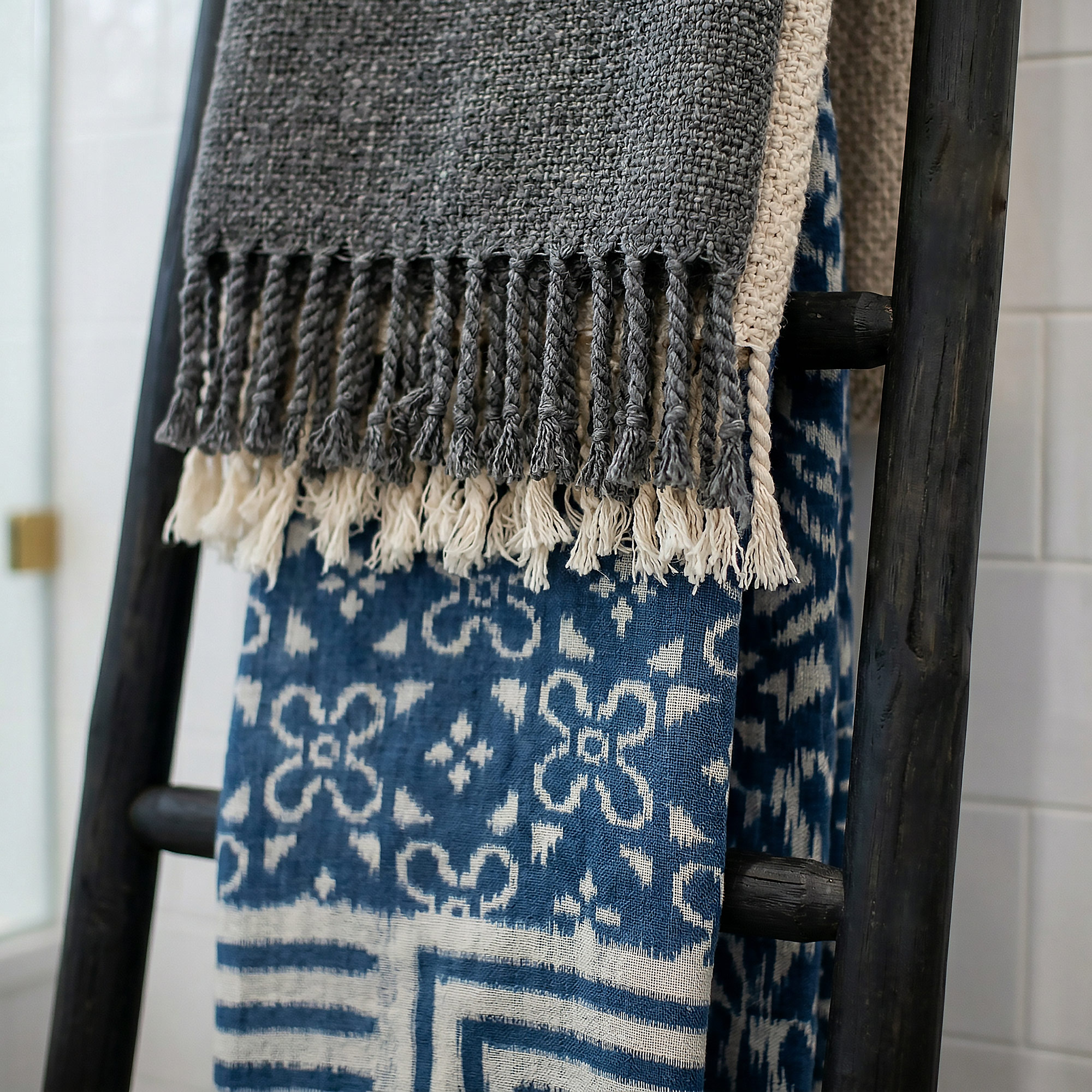 Perfekt, um Ihrem Interieur rustikale Eleganz zu verleihen, können diese Leitern verwendet werden, um Decken, Handtücher oder andere Gegenstände zu präsentieren oder einfach an eine Wand gelehnt als auffälliges Dekorstück dienen.