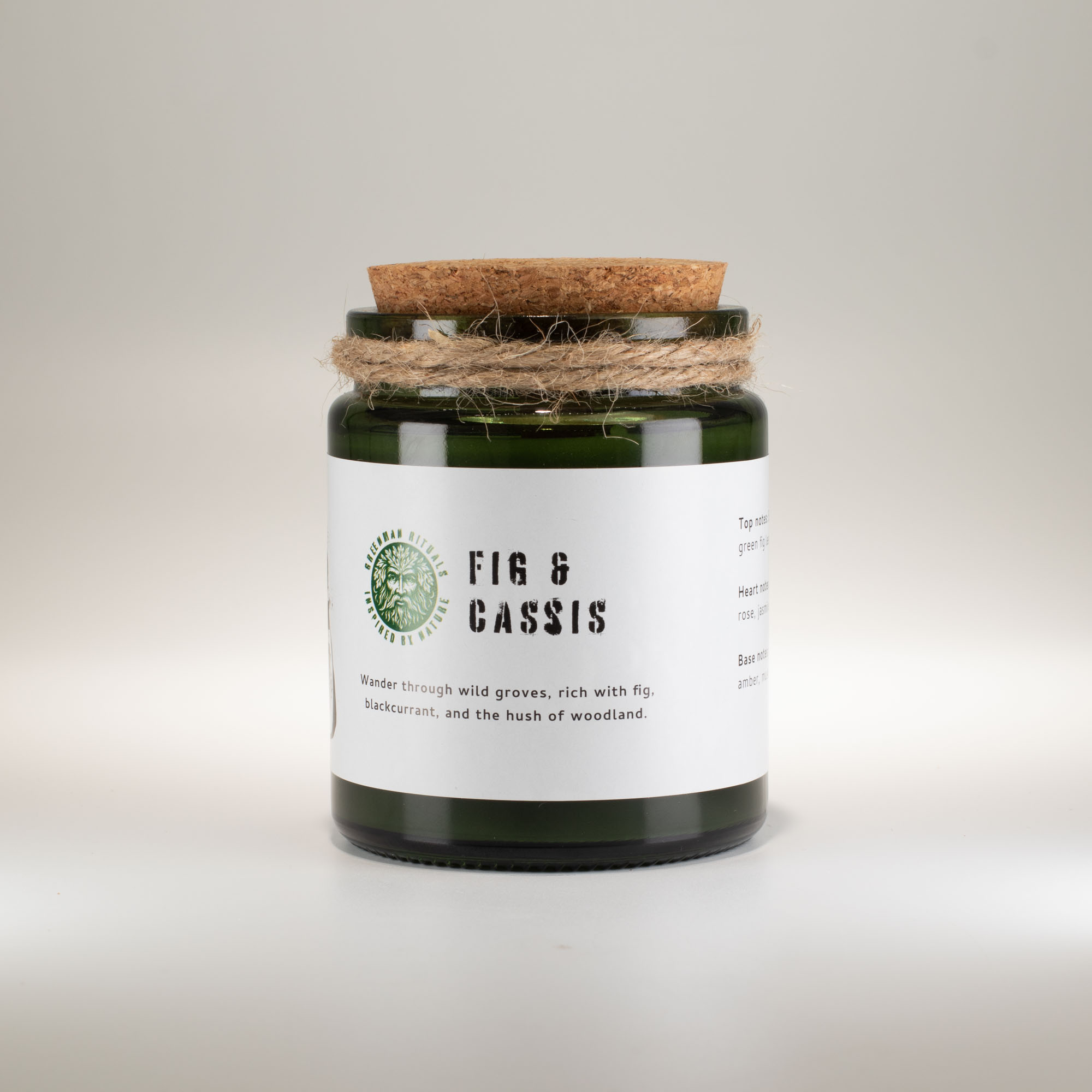 Die Kerze wird aus natürlichem Sojawachs gefertigt und brennt gleichmäßig, sodass sich die Frucht- und Holzelemente allmählich entfalten. Ein Holzdocht verstärkt die Atmosphäre mit einem sanften, zurückhaltenden Knistern. Das grüne Glasgefäß, kombiniert mit natürlichen Korkdetails, unterstreicht den geerdeten Charakter, während die Präsentation sauber und verkaufsfertig bleibt.