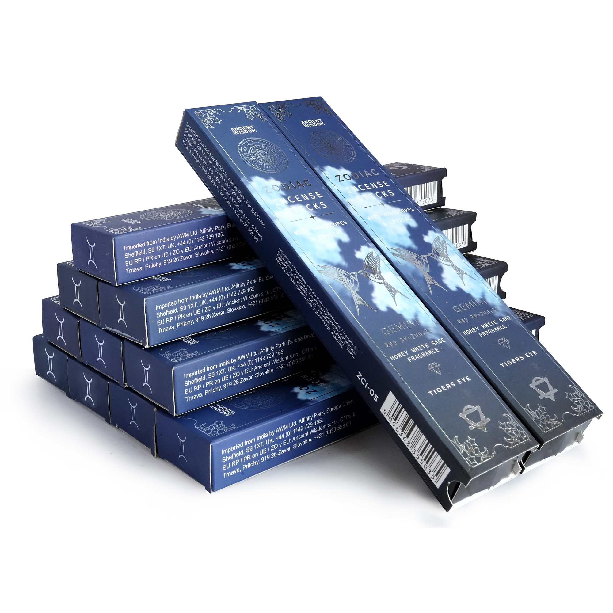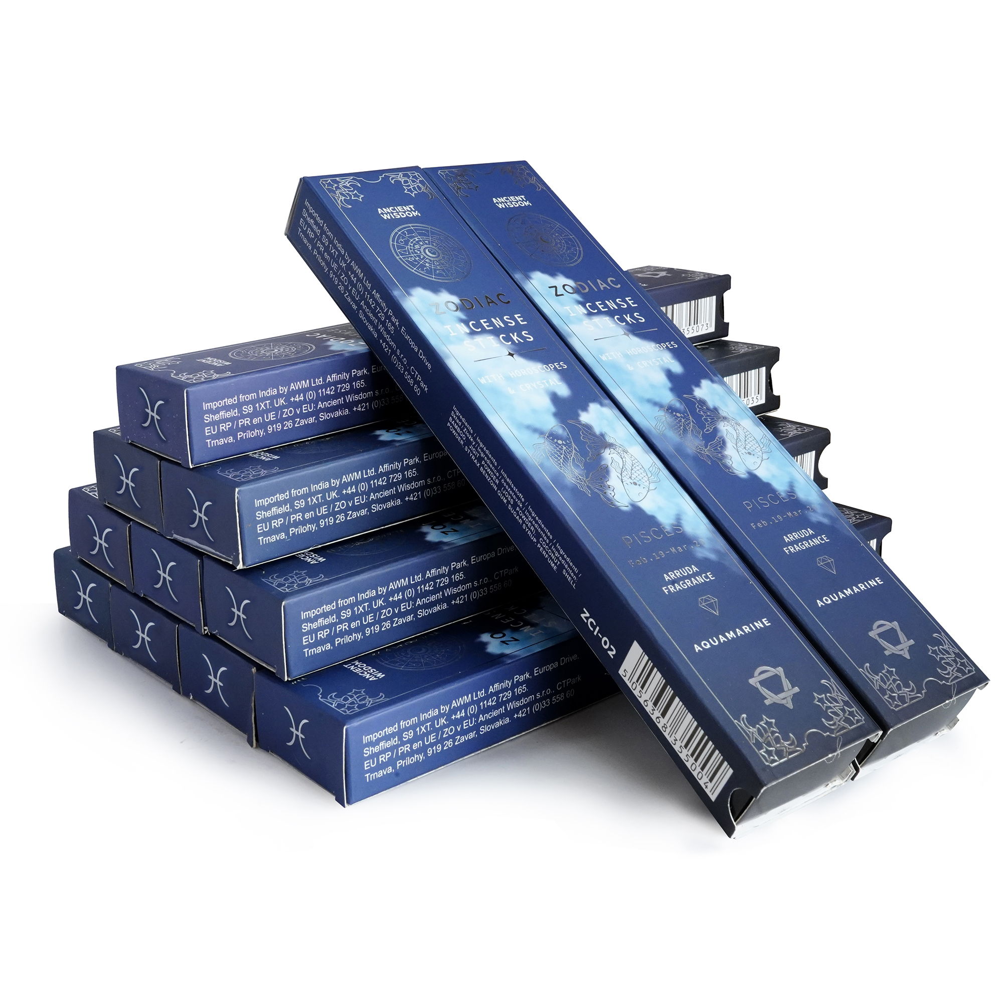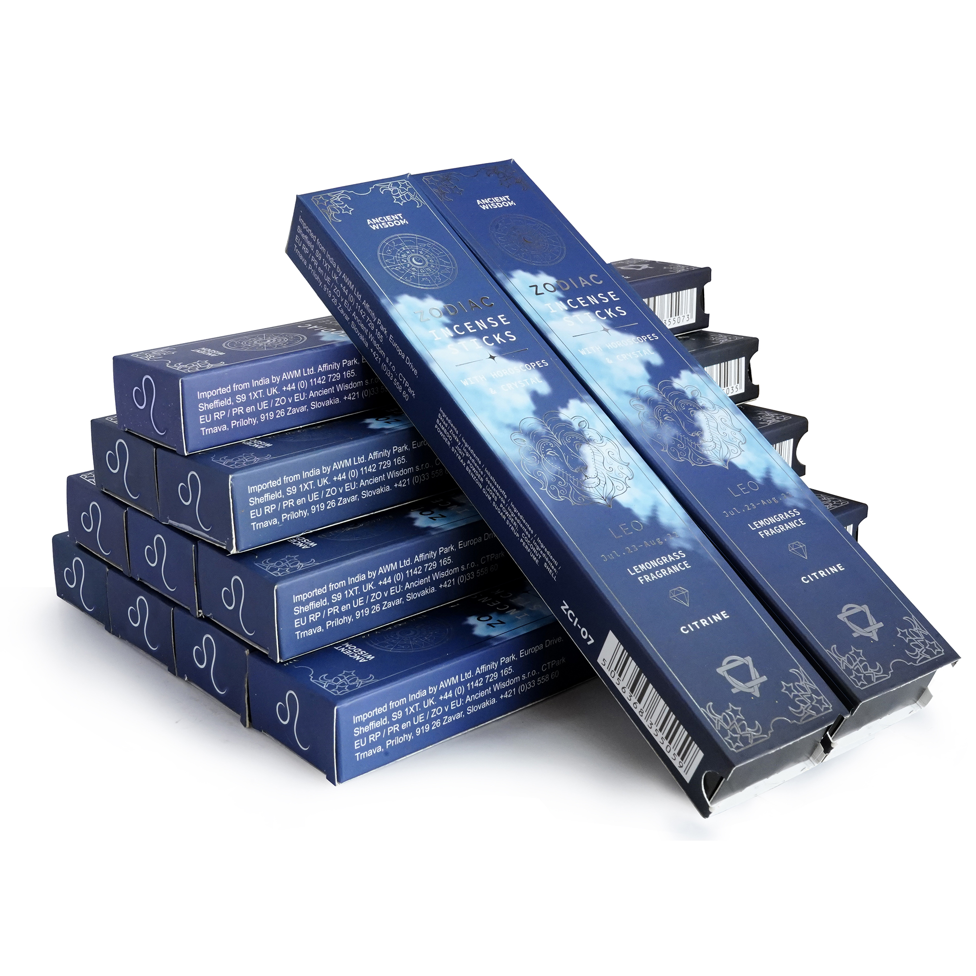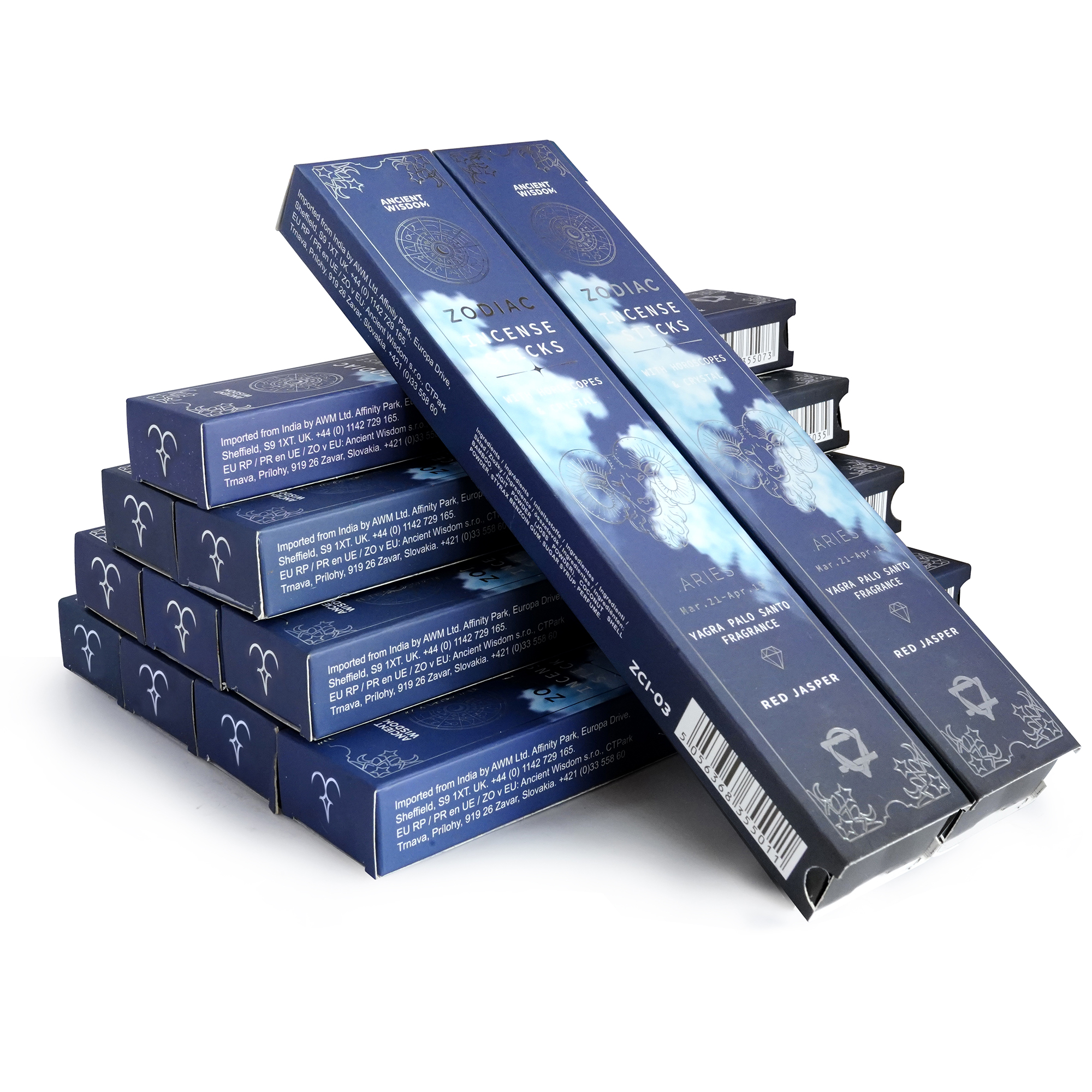 Die Düfte unterscheiden sich je nach Sternzeichen – von Lavendel für Wassermann bis Olibanum für Skorpion – und ermöglichen es Ihren Kund:innen, nach Duft, Stimmung oder Sternzeichen zu wählen. Jedes Horoskop-Set enthält zudem einen passenden Edelstein, wie Amethyst, Aquamarin, Roter Jaspis, Opalit, Tigerauge und weitere.