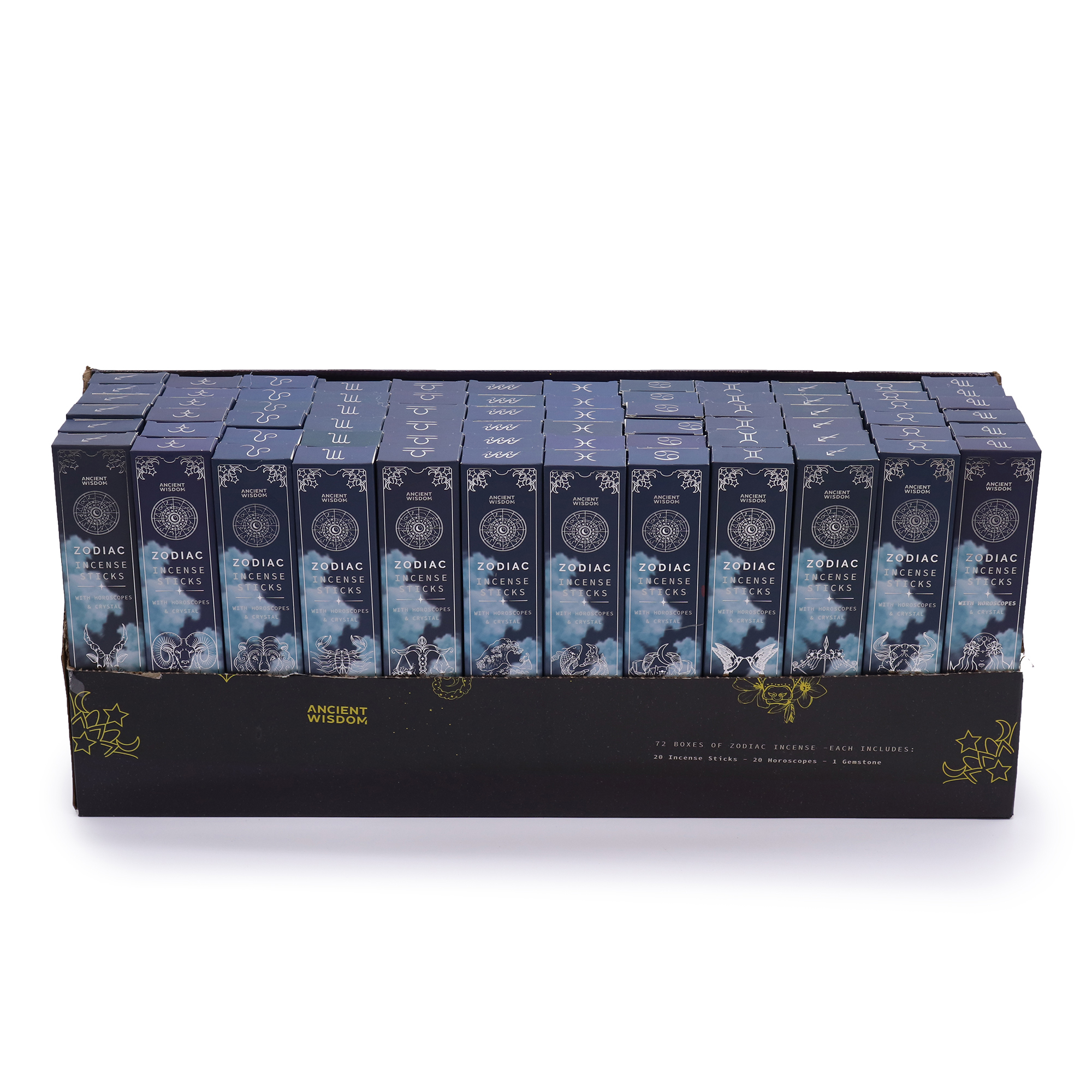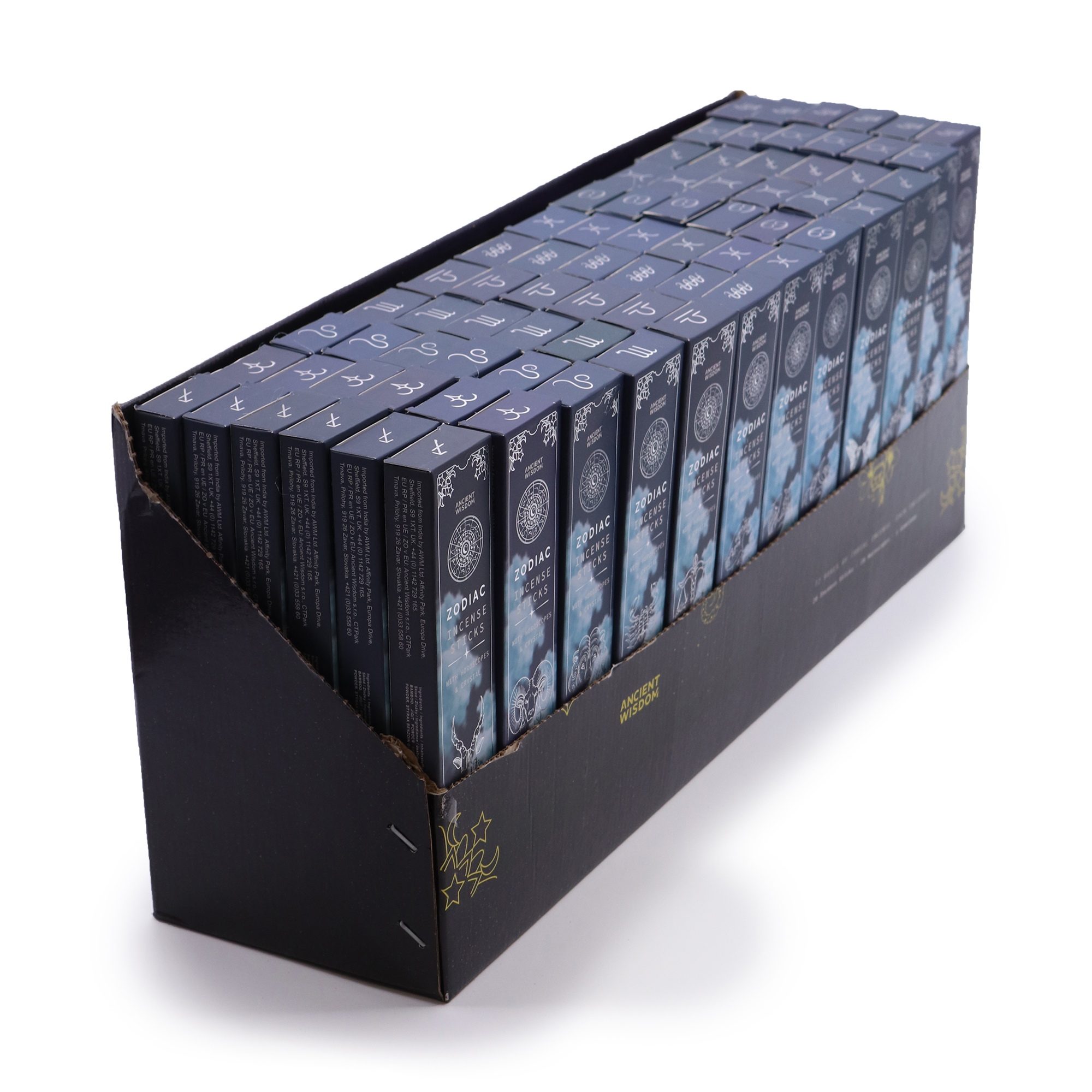Dieses Starter-Pack liefert Ihnen die komplette Zodiac Crystal Scents Kollektion in einer einzigen Bestellung. Sie erhalten alle 12 Sternzeichen-Designs, jeweils 6 Einheiten pro Zeichen, plus eine Display-Box, die die gesamte Kollektion aufnimmt.